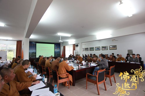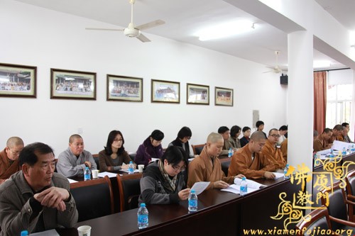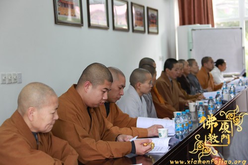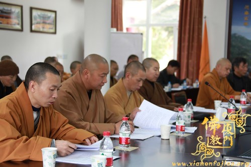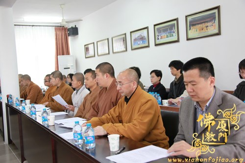 市民宗局领导:一处处长黄镇辉,调研员沈忠勇、黄斯坚;市佛教协会领导:会长则悟大和尚,常务副会长定恒法师,副会长法源法师、法云法师,秘书长净心法师等;市佛教协会办理社保专项工作协调小组人员及厦门市各寺院负责人参加了会议,会议由法云法师主持。