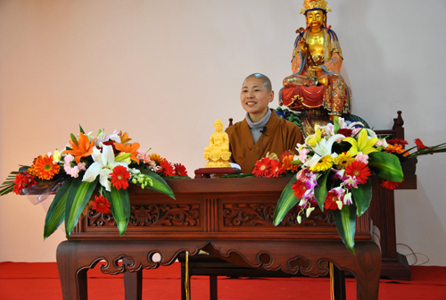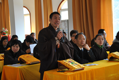 在正式仪式前一日,学院副院长显德法师为居士们开示