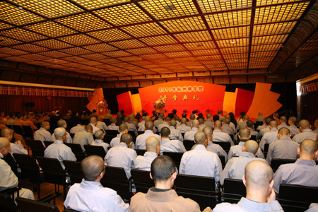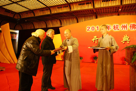 2011年3月7日上午,杭州佛学院在法云新校区隆重举行2011新学期开学典礼,由佛学院副院长慧仁法师主持,省、市各相关部门领导及佛学院全体师生出席。