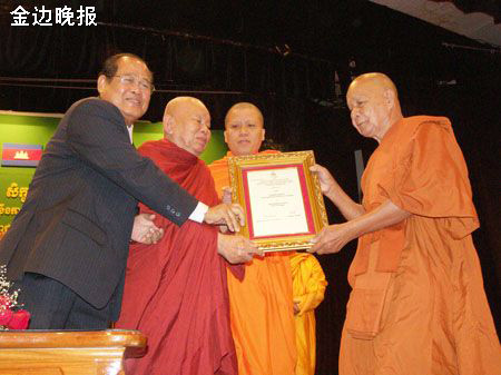 孟肯部长和僧王暖凯在会上还向部分僧侣颁发国王诺罗敦·西哈莫尼陛下的王令和委任书。(文:松青)