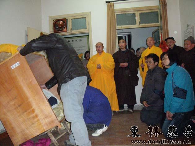 3月16日,经助念36小时后,根据情况决定于当晚六点入殓装龛。衣服换好后,家属最后一次触摸亡者的身体告别,他们先前知道的常识是,人死亡以后,遗体会迅速僵硬冰冷,可是张武强的身体是那么地柔软,头顶还留有余温,他们觉得太不可思议了,悲伤的情绪得到缓解,并情不自禁学着用佛教合十的礼仪向大众表示感谢。