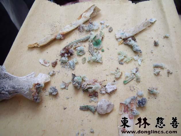 3月18日早上开窑捡灵骨,安养院前面已送走的二十六位往生菩萨,基本上都留下了美如珊瑚般的灵骨。这次张武强居士会不会也一样现些瑞相,来度化自己的家属亲朋呢?一路上天下着小雨,大家虔诚念佛求佛力加持雨不要下太大,以免影响捡骨灰。雨还真的没有下大,大家都欢喜地称这大概是法雨甘露吧!开窑仪式举行后,家属开始用专用的棒筷捡灵骨,大家惊喜地发现,好多彩色美丽的如珊瑚般的灵骨散布在骨灰里。那一刻,张居士的妻子流下了欣慰的泪水!大家挑了几十颗大粒的捡出来,家属蒙上纸,把这些彩色灵骨放在了骨灰盒的最上层,说家里老人要求要把张居士完完整整地带回去。 (慧玉/文)