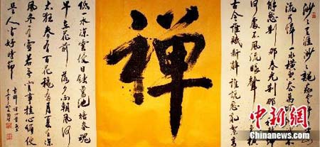 陶然作品集《了斋集——陶然书法艺术》,其中一幅巨大的“禅”字(图片来源:中新网)