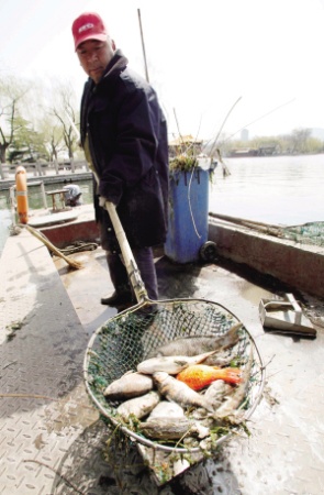 济南大明湖景区水面清理队几乎每天都工作在大明湖湖面上,负责清理湖面上的垃圾。但他们发现,每天平均捞起的死鱼也有二三十条,这些鱼为什么会死?