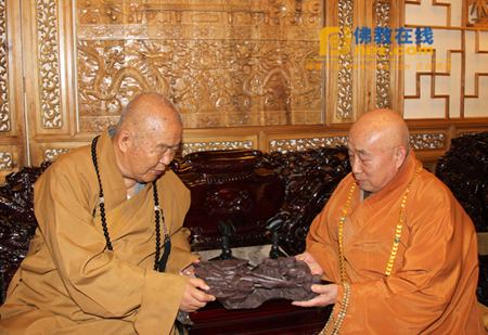 传印长老将一方象征吉祥平安的砚台送给星云大师