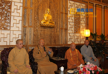 当日下午2点许,星云大师一行抵达北京法源寺,中国佛教图书文物馆馆长圆持法师,中国佛学院副院长张厚荣、向学法师,中国佛学院教师理证法师等,以及众多居士信众在山门前热情迎接星云大师一行。随后在大家的护拥下,星云大师一行来到会客厅,中国佛教协会会长、中国佛学院院长传印长老亲切会见了星云大师一行,双方互致问候,在亲切友好的氛围中进行了座谈交流。