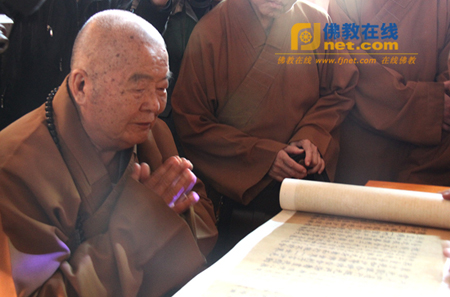 星云大师观瞻《大般若波罗蜜多经卷》