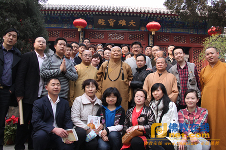 中国佛教图书文物馆馆长圆持法师等在山门外热情迎接星云大师一行