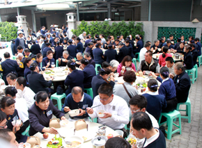 2011年4月26日,适逢慈济四十五周年,来自全球逾一千一百位的海内外慈济人,纷纷于当天回到心灵的故乡,参与早上的朝山、药师法会。当天中午,静思精舍席开204桌,让慈济家人们、照顾户、工程志工与厂商,及法师们一同以健康温馨的午斋蔬食欢喜共聚。