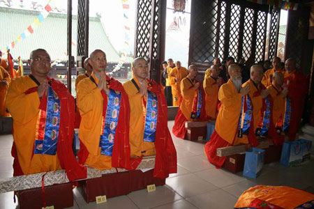 下午3点,六祖寺六祖殿瑞气腾祥,大愿法师授予韩国9名僧人沩仰宗第十一代传人法卷。授予、接法仪式福慧具足、功德圆满。