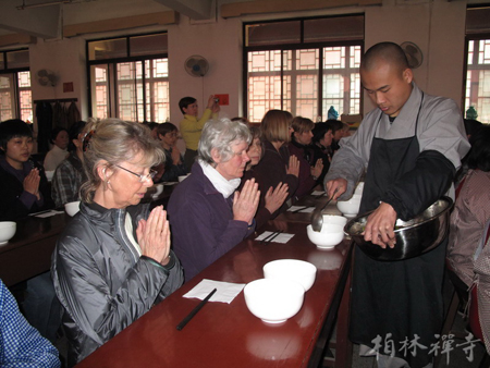 参访期间,来自大洋彼岸的禅修者们在晨钟暮鼓中礼佛课诵、参禅打坐,随众过堂,与柏林禅寺僧俗两众共修,体验了清净的禅宗寺院生活。