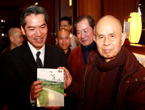 被誉为“入世佛教”(Engaged Buddhism)先驱与精神领袖的一行禅师,带领僧团35人,于2011年4月8日下午4时抵慈济人文志业中心进行参观访问,了解慈济回收的社区化发展,并于当晚以“活在当下、当下净土”为题举办心灵讲座。
