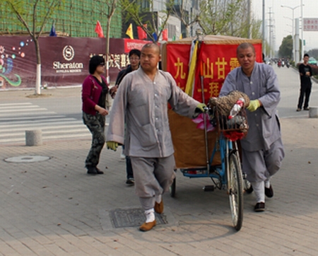 安徽九华山甘露寺智远法师和含亮法师为朝拜山西五台山五方文殊菩萨,从九华山甘露寺到五台山黛螺顶,有1800多公里的路程,三步一拜叩拜朝礼,要“走”上半年时间。2011年4月9日,智远法师和含亮法师已叩拜朝礼至安徽合肥市,并从合肥潜山路最南端出发,一路往北,后经淮南、寿县、毛集实验区、阜阳、亳州,河南商丘、开封、郑州、原阳、新乡、淇县、安阳,河北磁县、邯郸、永年、沙河、石家庄、正定、新乐、行唐、阜平,最后抵达山西五台山。