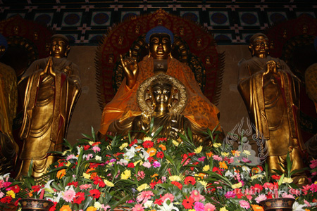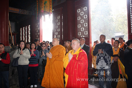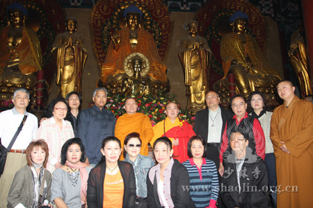 河南讯 2011年4月19日至20日,河南嵩山少林寺僧众热情地接待由泰国曼谷岱密寺副主持、泰国岱密孔子课堂泰方主席、泰国隆财基金会主席赵昆通猜率领的僧俗两众,并为泰方捐赠的鎏金佛像举行隆重的开光仪式。