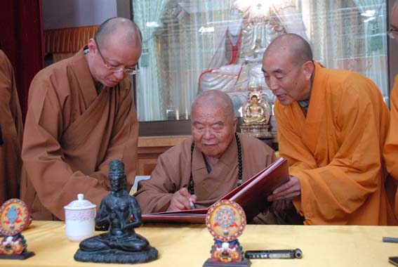 开示结束后,星云大师向法门寺赠送了佛光山《梵呗》礼品和自己刚刚出版的专著,并与佛学院所有学僧结缘一本《星云法语》。智超法师与贤空法师也代表法门寺向星云大师赠送了《纪念法门寺二十年画册》以及《和尚博客》。