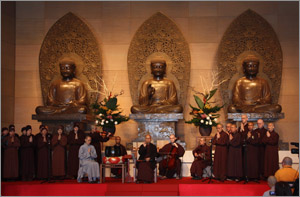 台湾讯 应法鼓山僧众邀请,一行禅师于2011年4月8日,到法鼓山世界佛教教育园区参访。法鼓山方丈果东法师亲领僧团弟子恭迎接驾,并邀请一行禅师为法鼓山僧俗四众开示说法。