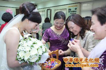 为了举办这场佛化婚礼,许多佛光人还特地请假来帮忙,佈置场地、担任金刚及知宾. 佛光人方宇仁说:“在大慈佛社的信众就好像一家人,这场佛化婚礼就好像大家一起办喜事。”