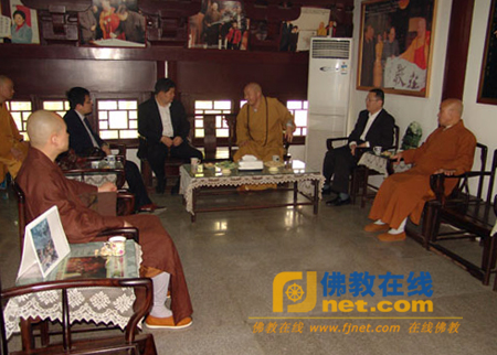 南京讯 2011年4月17日下午,中国佛教协会秘书长王健、副秘书长卢浔,中佛协副秘书长、北京广济寺方丈演觉法师,中佛协教务部副主任长顺法师,南京市宗教局纪勤副局长一行视察毗卢寺,毗卢寺方丈传义法师率两序大众及护法居士热情迎接各位领导一行。