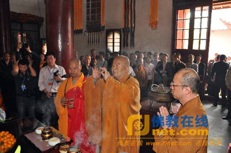 星云大师在云居山真如禅寺大雄宝殿内拈香