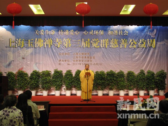 2011年5月27日上午9时,第三届“觉群慈善公益周”开幕式在上海玉佛禅寺觉群楼多功能厅举行,开始了为期七天的慈善周活动。中共上海市普陀区委常委、统战部部长夏斯德,上海市民宗委佛道教处处长何建,上海市慈善基金会副理事长周剑萍,普陀区委统战部副部长、区民宗办主任张桂文,中国佛教协会副会长、上海市佛教协会会长、玉佛禅寺方丈、觉群慈爱功德会理事长觉醒法师,普陀区民政局局长倪辉,上海市佛教协会副会长周富根居士,普陀区台侨民族宗教办调研员荆昌德,普陀区教育局副局长赵平,上海援疆指挥部社会发展处副处长曹俊山,普陀区合作交流办副主任管永平,云南普洱驻沪办副主任梅娅,普陀区教育学院院长杨杰先生等领导,觉群慈爱功德会众位副理事长以及玉佛寺护法居士约500人出席了开幕式。
