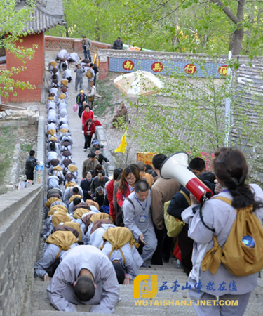 2011年5月22日,浙江省嘉兴市大曹王寺住持维华法师率领由来自全国17个省市的250余位居士组成的朝拜团,以三步一拜的方式圆满朝拜了五台山。