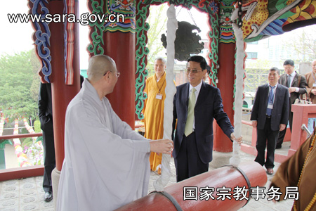 应韩国佛教曹溪宗的邀请,2011年5月6日至5月10日,国家宗教事务局蒋坚永副局长率领由国家宗教事务局代表团与中国佛教协会代表团一行共18人赴韩,出席韩国佛教莲灯庆典活动。