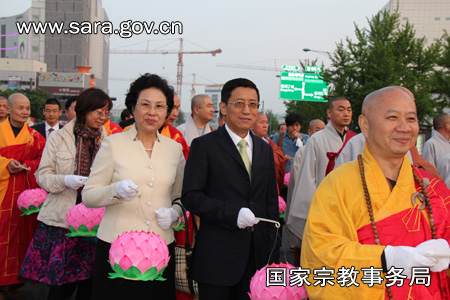 (左首为吉林省宗教局姜光子局长,右首为中国佛教协会副会长明生法师)