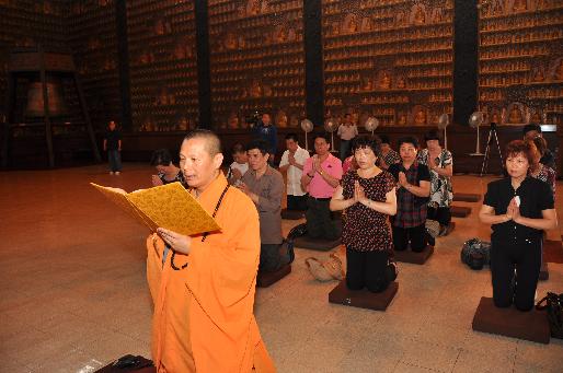 此外,光华旅行团长江区域的旅客们也在佛光山宗委会主席办公室主任慧思法师主法带领下,在大悲殿举行一场祈福法会,心有余悸的他们,合掌虔诚跪拜,脸上流著泪水,感谢佛菩萨的保佑,让他们化险为夷。