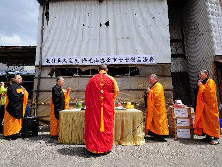 自4月23日起,佛光山在日本的别分院率先于本栖寺举行两天的精进念佛超度法会,4月28日至5月1日由大阪佛光山寺举行四天的梁皇超荐法会,东京佛光山寺则于5月2日至5日举行“为东日本大震灾消灾祈福暨超荐回向梁皇法会”,继续为生者祈福、为亡者回向祝祷。