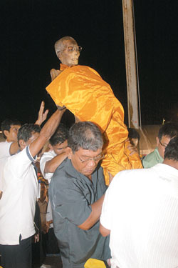 圆寂已超过四年的昭坤帕贴蒙古拉然博士长老是泰国皇室太子僧,也是首位获得泰皇御赐圣火荼毗仪式的海外泰裔高僧,除了泰皇御赐圣火及3套袈裟之外,泰皇御僧、马新泰国逾500名僧侣、泰国驻大马领事馆高官、房屋及地方政府部长拿督威拉曹智雄局绅等都出席送葬仪式。