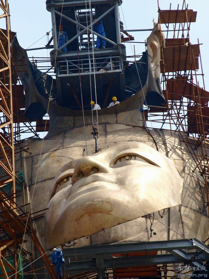 佛面的安装是整个大佛安装过程中最为困难的一个环节,佛面安装成功预示着东林大佛像安装工程取得了决定性的胜利,也为年底的圣像开光提供了决定性的保障。