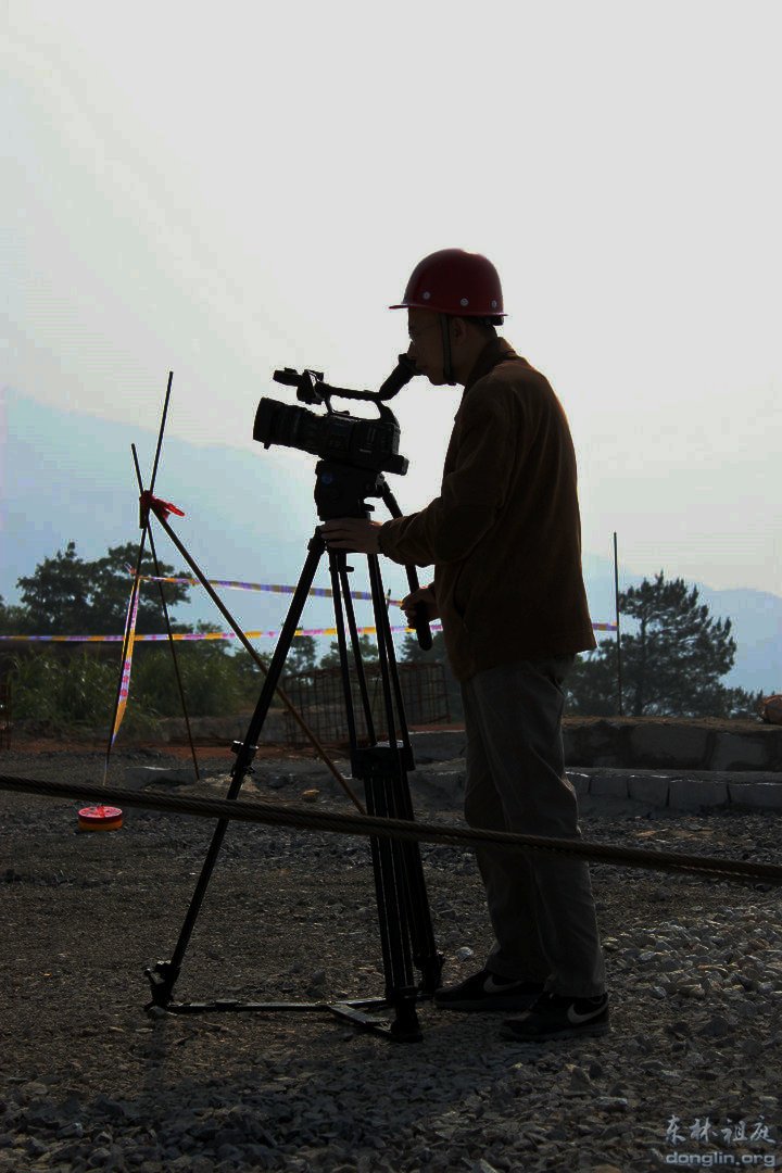 东林净宗学会视听中心工作人员用摄像机全程记录了大佛佛面起吊与安装过程