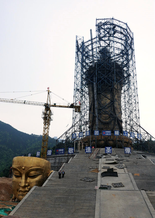 2011年5月16日上午9时18分,位于九华山风景区的九华山大愿文化园地藏菩萨露天铜像主体工程建设现场锣鼓齐鸣,五彩缤纷,鞭炮齐放,在一片热烈、欢快、祥和的气氛中,九华山大愿佛像顺利实施圆顶。