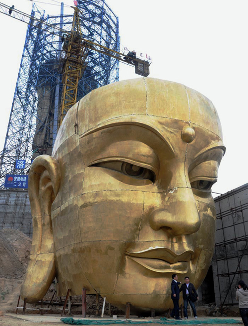 主体工程99米地藏王菩萨大铜像将于年底前全面完工,九华山大愿文化园景区将于年底建成开园,大铜像于明年择日开光。(吴耀东 李晓白)