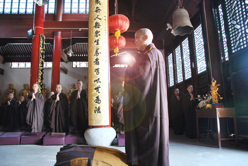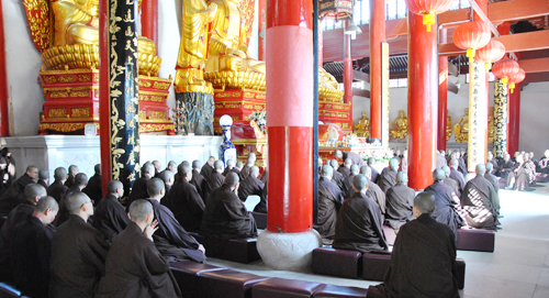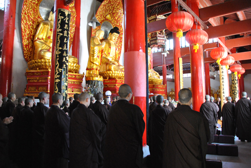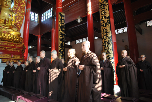 安居仪式 2011年5月18日(农历四月十六),慈云佛学院全校师生约150人,在院长上了下藏法师的带领下,于大殿内如法举行结夏安居仪式。