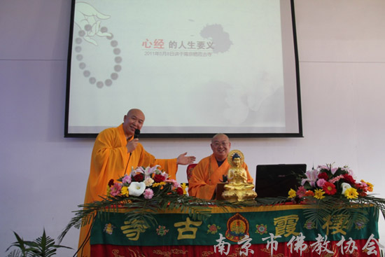 首届“金陵礼佛文化月”中的重要活动--讲经说法,2011年05月08日,礼请正慈大和尚在南京栖霞古寺开讲《心经的要义》。