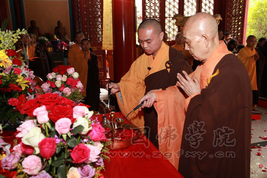 2011年5月10日(农历四月初八)释迦牟尼佛诞辰日,我院隆重举行了庆祝佛历2555年浴佛法会。浴佛法会由我院副院长兼教务长宗性法师主法。