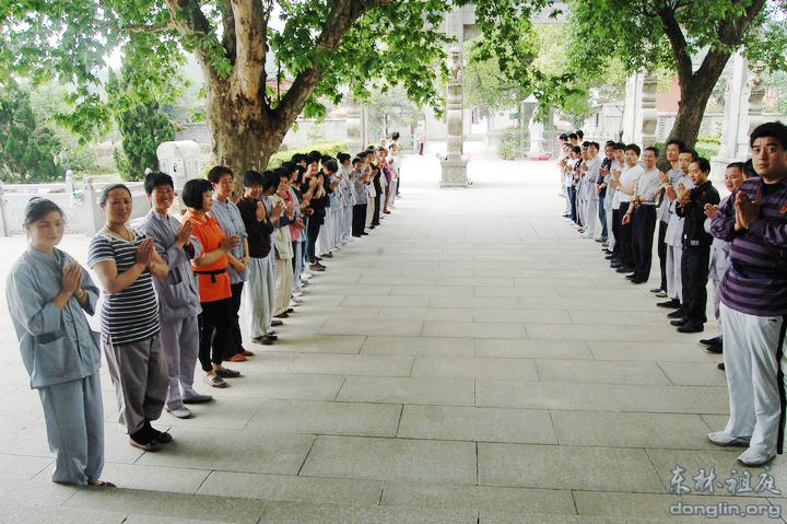 道元法师简略介绍了东林寺百万声佛号闭关、精进佛七,以及每月的24小时经行念佛等活动,并将闭关报名电话告诉大家。道元法师说,尽管东林寺这几年修建了关房、念佛堂和寮房,但还是赶不上四众弟子来共修的需求。道元法师赞叹闭关念佛对修行非常有益,举例说,演红楼梦电视剧的妙玉居士来闭过关,感觉身心轻安;新加坡一位演艺界佛弟子闭关后说,以前还以为自己修持不错,闭关了,才知道什么是修行。