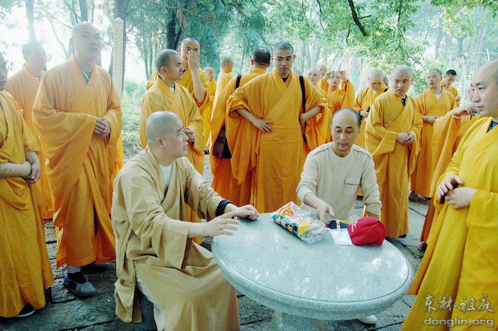 道元法师的介绍,引起了参访团各位法师的极大兴趣,提出去山顶关房看看。道元法师带领参访团参拜了文佛塔后,参观了山顶关房,然后来到远公、果公塔院参拜。在远公塔前的佛手樟下,心定法师感慨地说,在东林寺一路走来,听各殿堂悠扬的佛号声,相比峨眉山的旅游氛围,东林寺确实道场清净,是个净化心灵的好地方。