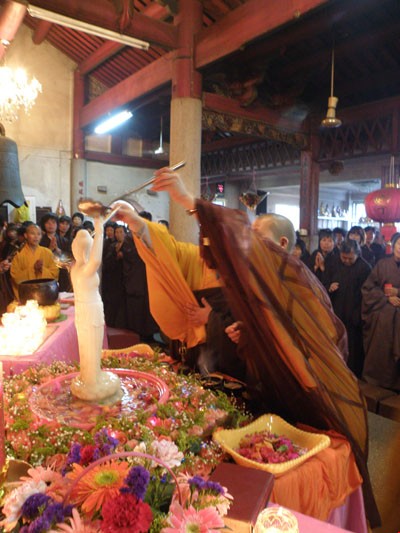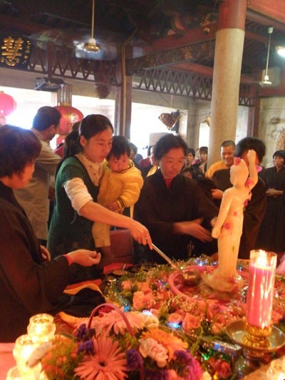 5月6日消息:为恭迎、庆祝本师释迦牟尼佛圣诞,今天上午,厦门市同安区梅山寺举行了清净庄严的浴佛法会及义诊活动,法会由梅山寺住持慈明法师主法。全寺僧众及各地的护法善信们都踊跃参加。齐齐吟诵:“我今灌沐诸如来,净智功德庄严聚,五浊众生令离垢,愿证如来净法身”的偈颂。祈愿一切众生同发菩提心,涤除众人心中烦恼,得以身心清净。(图文:梅山寺)