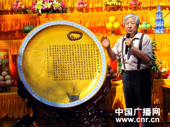 中国古陶瓷科技鉴定中心首席鉴定师毛晓沪在赠送仪式现场对佛经宝盘评价道:这个佛经宝盘制作工艺极其复杂,看的出倾注了董凤树等艺术大师在创作上的无比投入和所付出的巨大心血,可谓无价之宝。