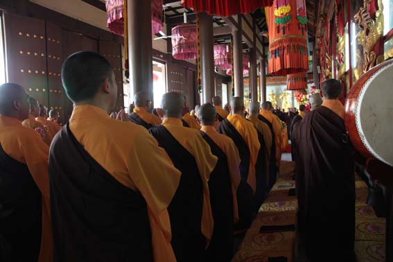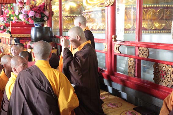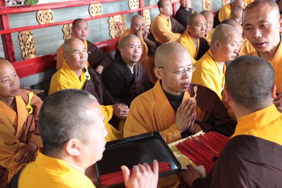 2011年5月17日(农历四月十五)早上7:30分, 法门寺全体僧众与法门寺佛学院全体师生在大雄宝殿内如法如律举行结夏安居受筹仪式。