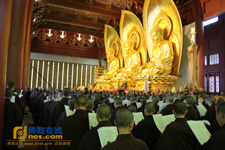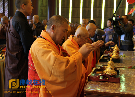 妙江法师、梦参长老、净慧长老拈香主法(左至右)