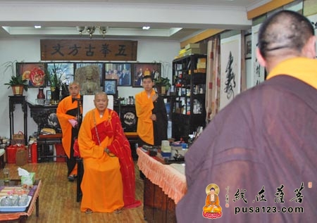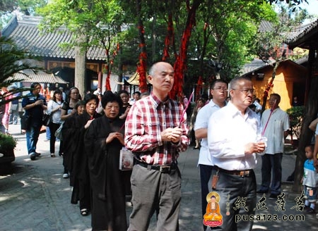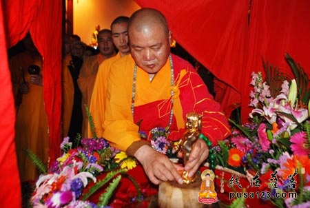 秋爽大和尚带领僧众、信众、居士开始浴佛