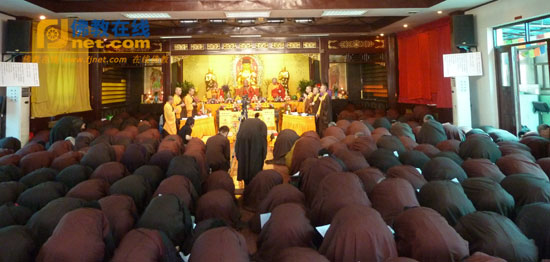 上午9时整,在众戒子的迎请下戒师入坛授戒,居士代表往佛像前烧香致敬,大众礼敬三宝,随后经过请师乞戒、开导戒法、请圣、授四不坏信、忏悔罪障、发十四大愿、正授戒体、宣示戒相、叹德劝勉等一系列仪式后,传印长老宣布各位佛子成功地受了菩萨戒,并告诫大家一定要持好菩萨戒,经常读诵菩萨戒本,随时提醒自己不要犯戒。平时要生大乘善信,要发菩提心,精进勇猛,勿生退堕。(佛教在线记者 晏如 现场报道)