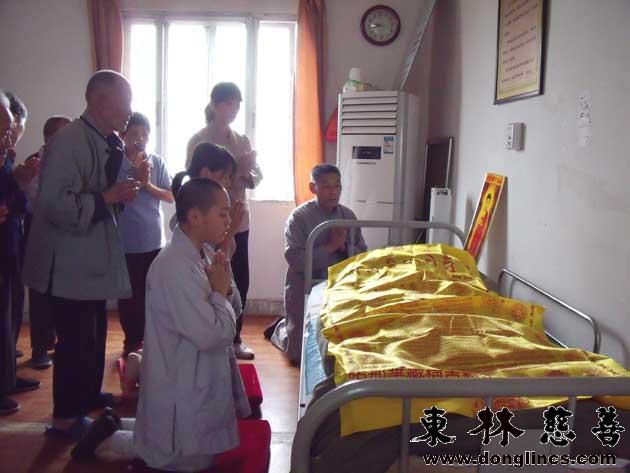 傅师兄同往生者家属一起跪念佛号,虔诚为其送往生