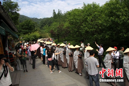 当日早8点30分,在杭州市佛教协会会长光泉法师的带领下,杭州市属寺院和佛学院的近300名行脚僧从上天竺法喜讲寺出发,沿天竺路,途经中天竺法净禅寺、三天竺法镜讲寺至灵隐寺,托钵行脚历时2小时,所得善款全部用于慈善事业。