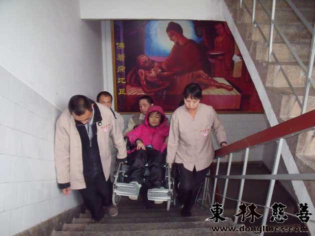 东林慈善工作人员到胡华金居士家中接她入住安养院