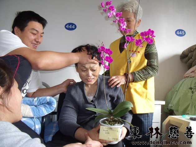 胡华金居士在东林慈善安养院过生日,工作人员及志愿者们为其赠送鲜花