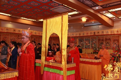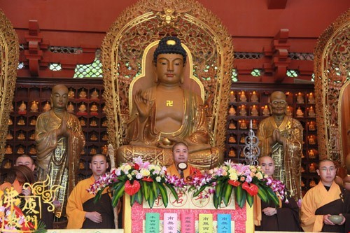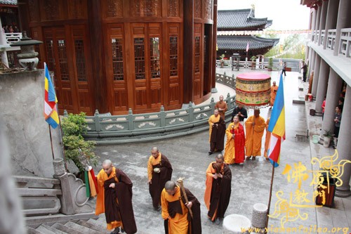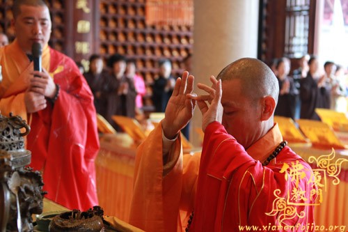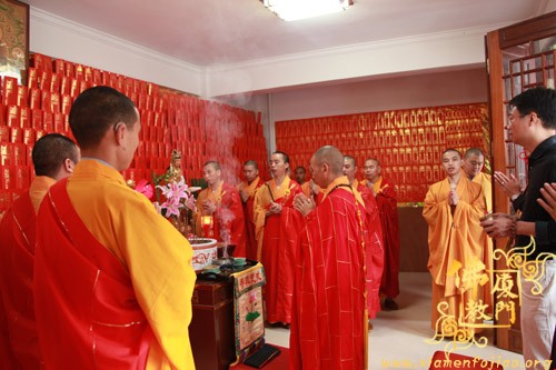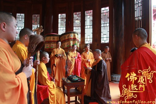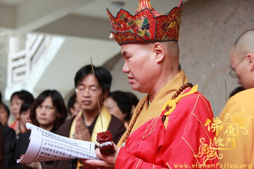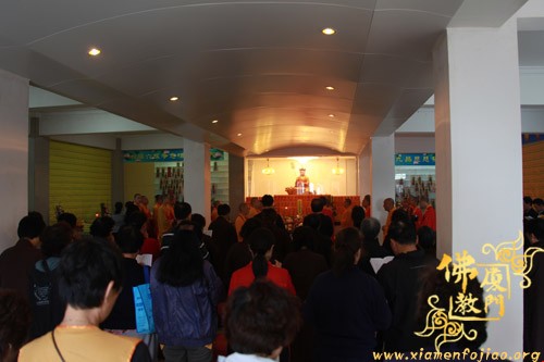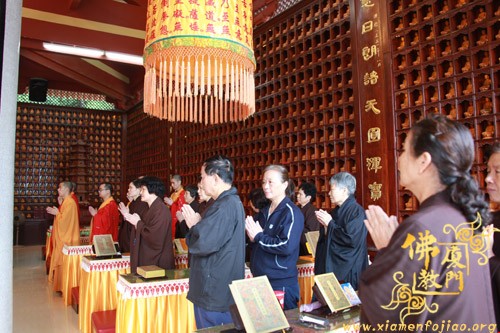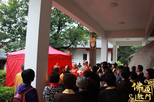 上午10时许,恭请厦门市佛教协会会长、南普陀寺方丈则悟大和尚,登狮子座,为众说法。随后,太平岩寺住持世澄法师领众上供、回向、过堂。